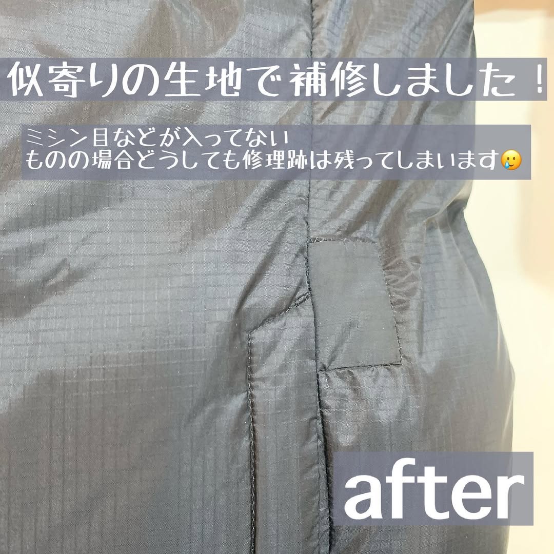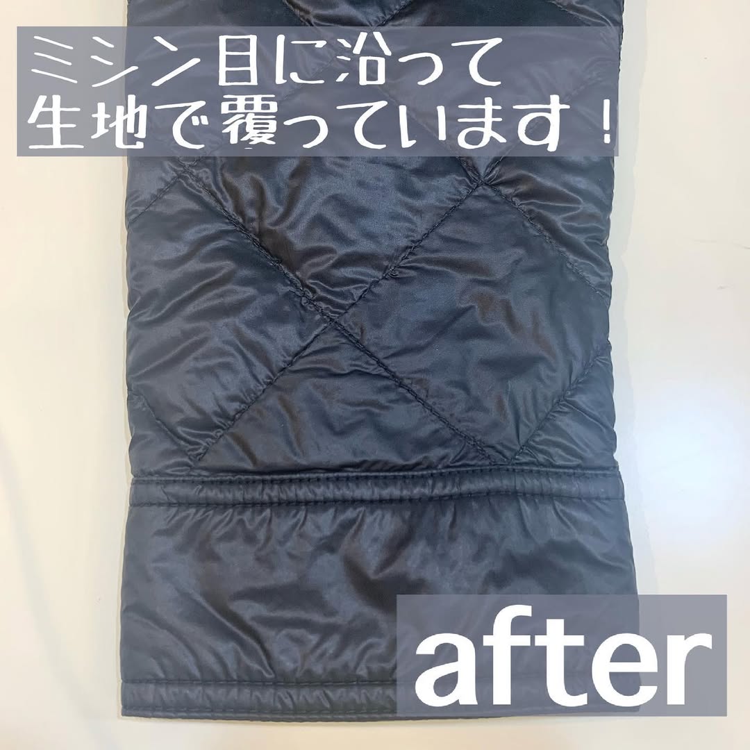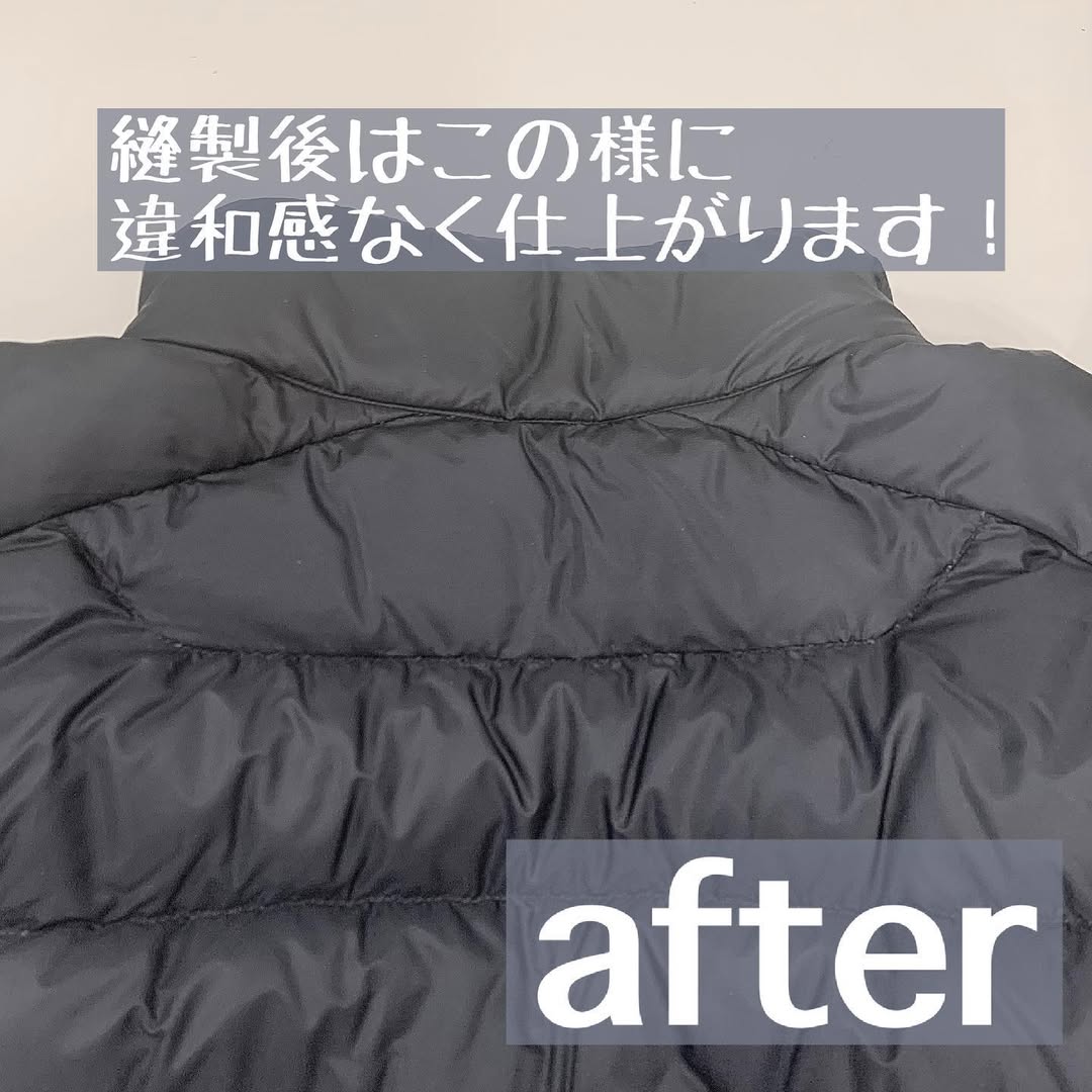 ダウン破れ・穴あき修理が不可の場合:一部特殊なダウンについてはファスナー交換が不可の場合があります。