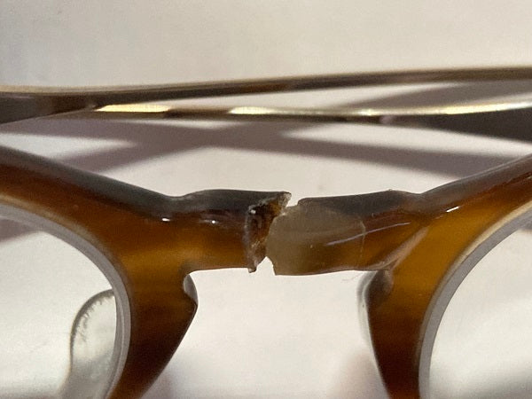 アセテートのフレームはリム折れやテンプル折れなどにも対応しています。クリングス、ノーズパッドの修理などほとんどのものが修理可能です。